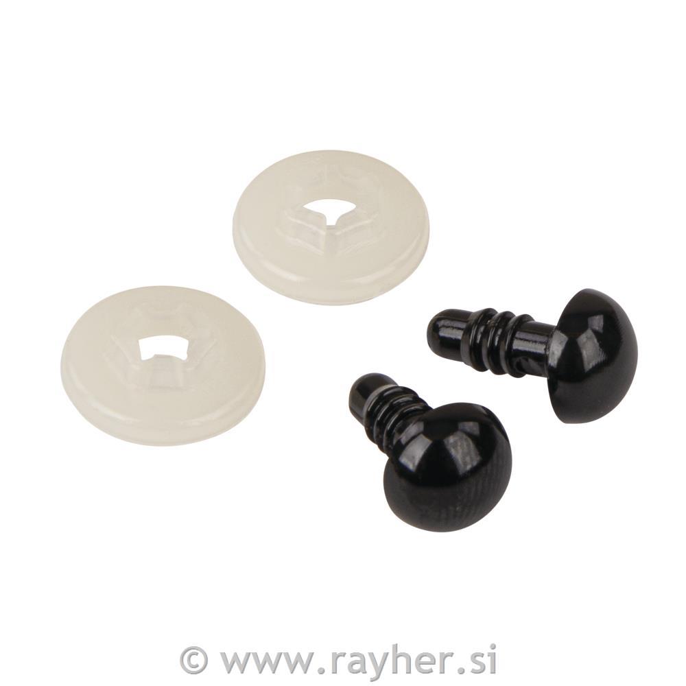 Varnostne ušesce iz plastike, 10 mm o, črne, s podložkami, 10 kosov