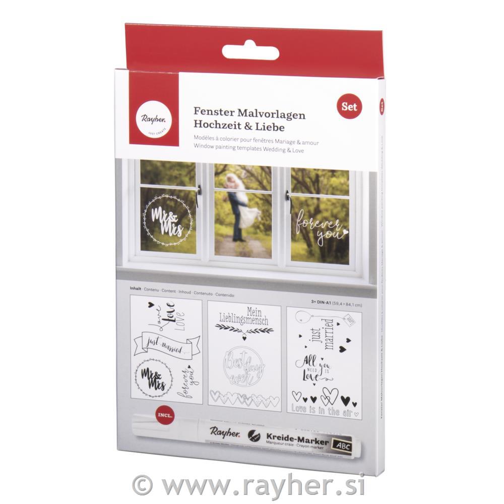 Šablone za okna Wedding&Love, 3 predloge+1 kredni flomaster