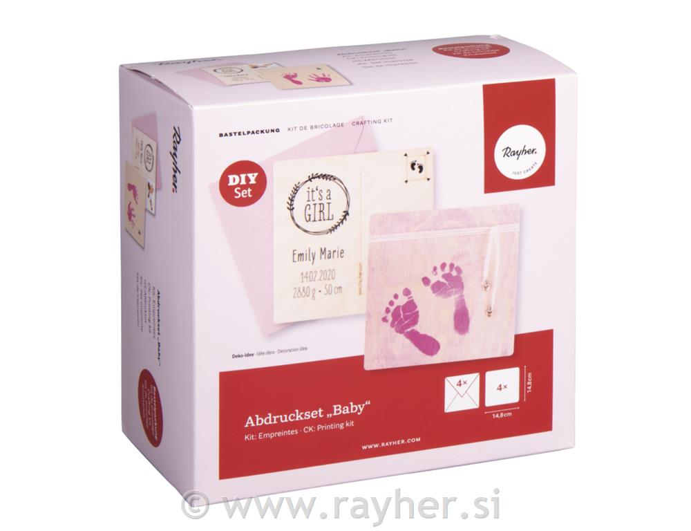 Ustvarjalni set: Odtis nogice/rokice "Baby", pink, 10-delni