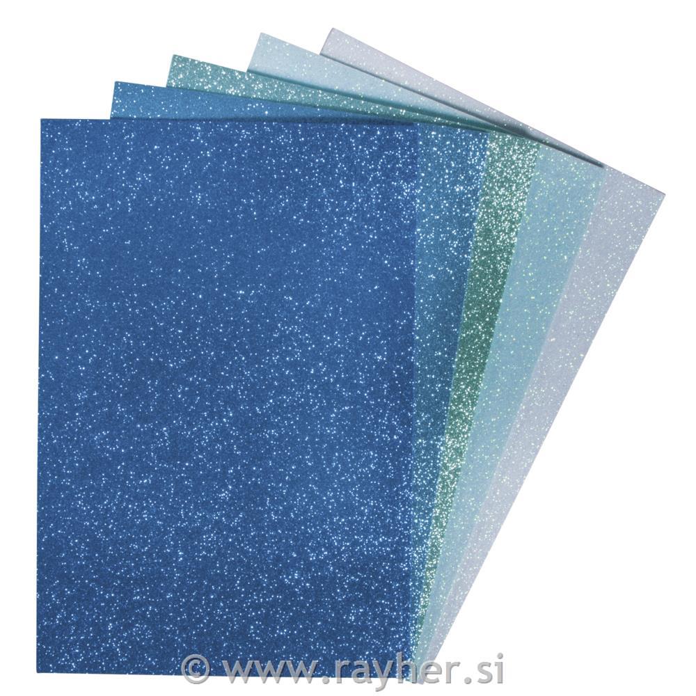 V setu je 5 različnih modro/zelenih odtenkov. Sprednji del je sestavljen iz svetleče bleščeče površine, zadnja stran je samolepilna.