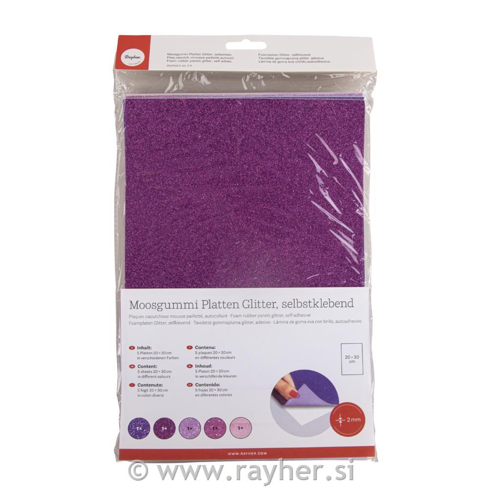 Penasta guma z blešč.,20x30cm, samolepilna, 5 kosov