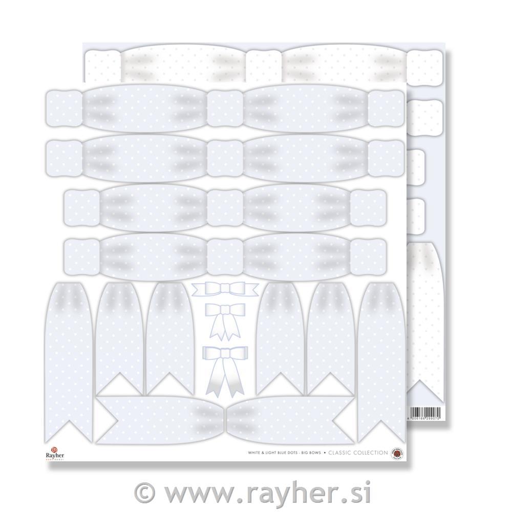 Scrapbooking papir: Pike+pentlje, bele/modre, 30,5x30,5 cm, 190g/m2