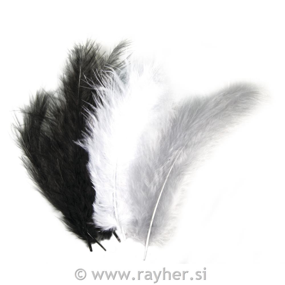 Perje puhasto mešano, sivo/črno/belo, 10-15cm, 15 kom