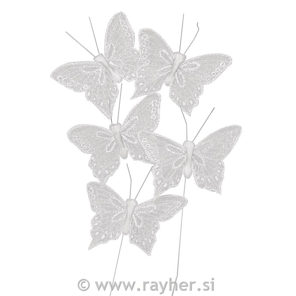 Metulji z bleščicami, 5 cm, beli, 5 kom.