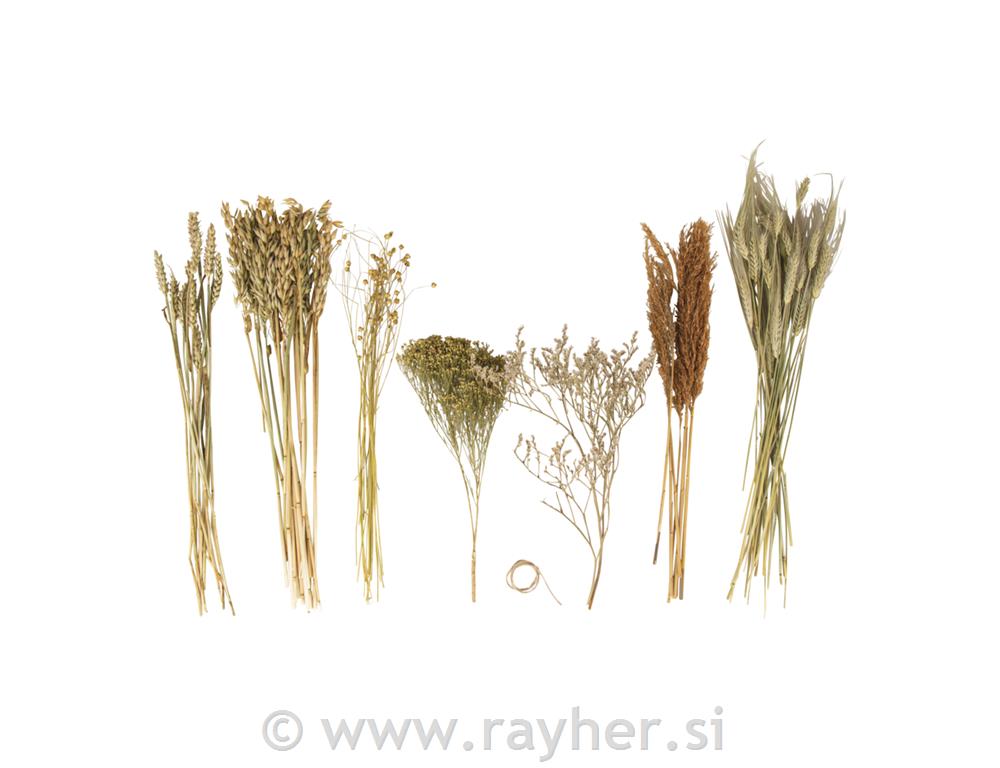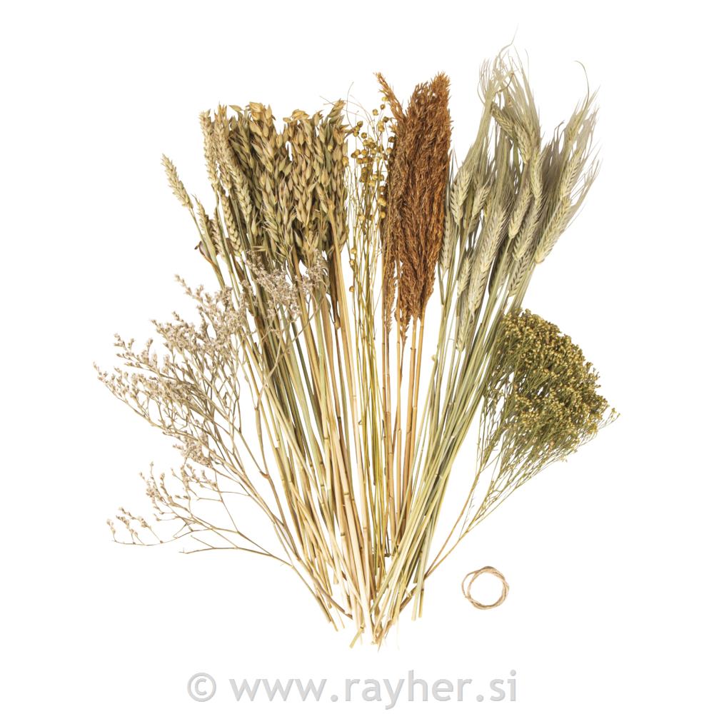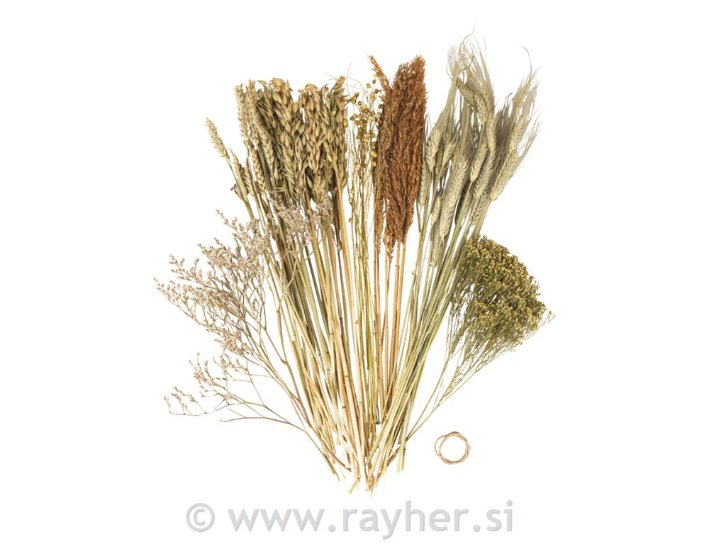 Modna mešanica suhega cvetja iz različnih materialov, ko so pšenica, oves, ličnik, trsni strnad, črna kumina...in druge, bodo napilnile prostor tudi z vonjem po naravno sušenem cvetju in travi.