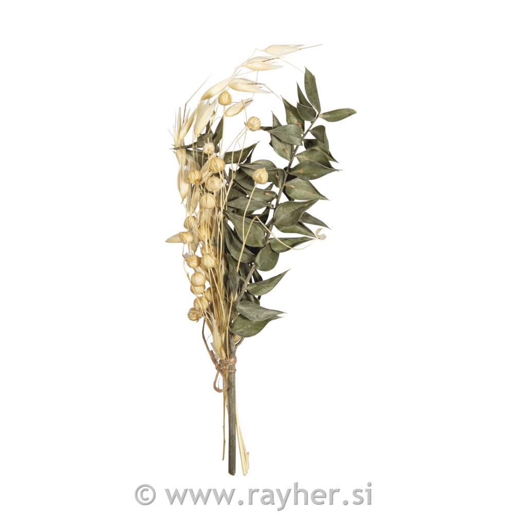 Šopek suhega cvetja, 18-20 cm, zelen-natur