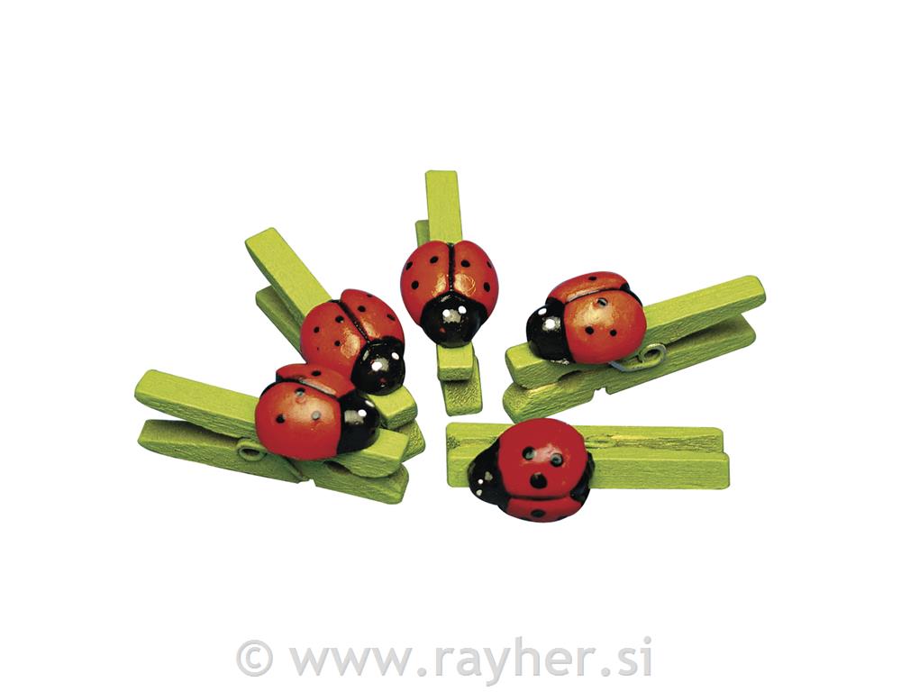 Lesene ščipalke s pikapolonico, 3 cm, 12 kom.