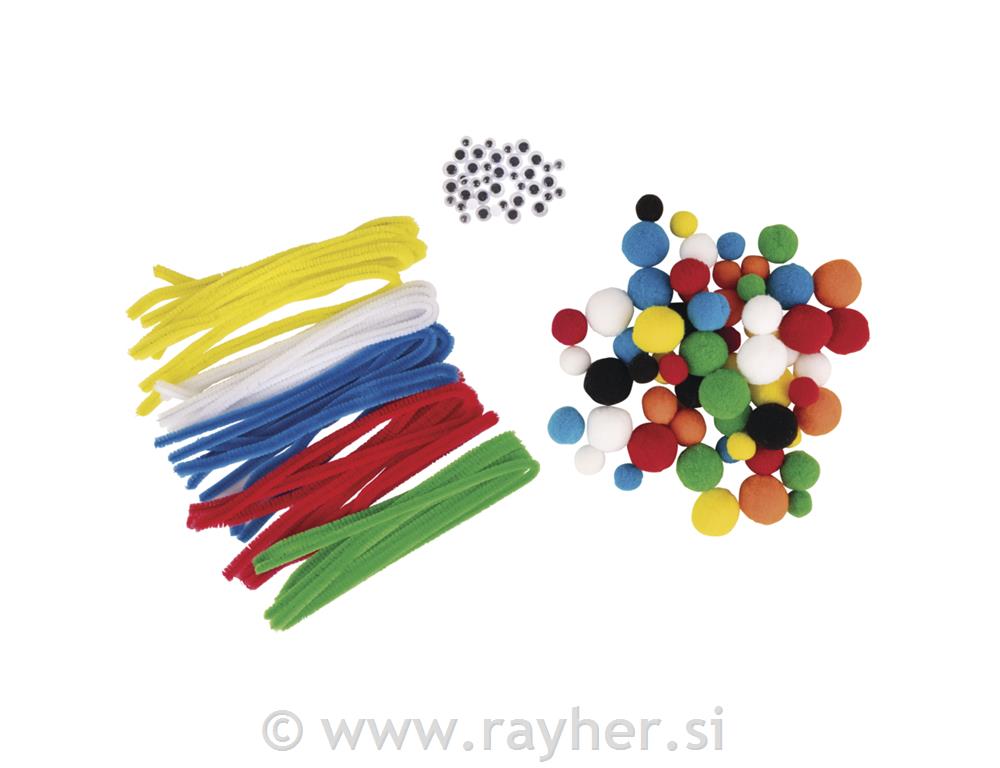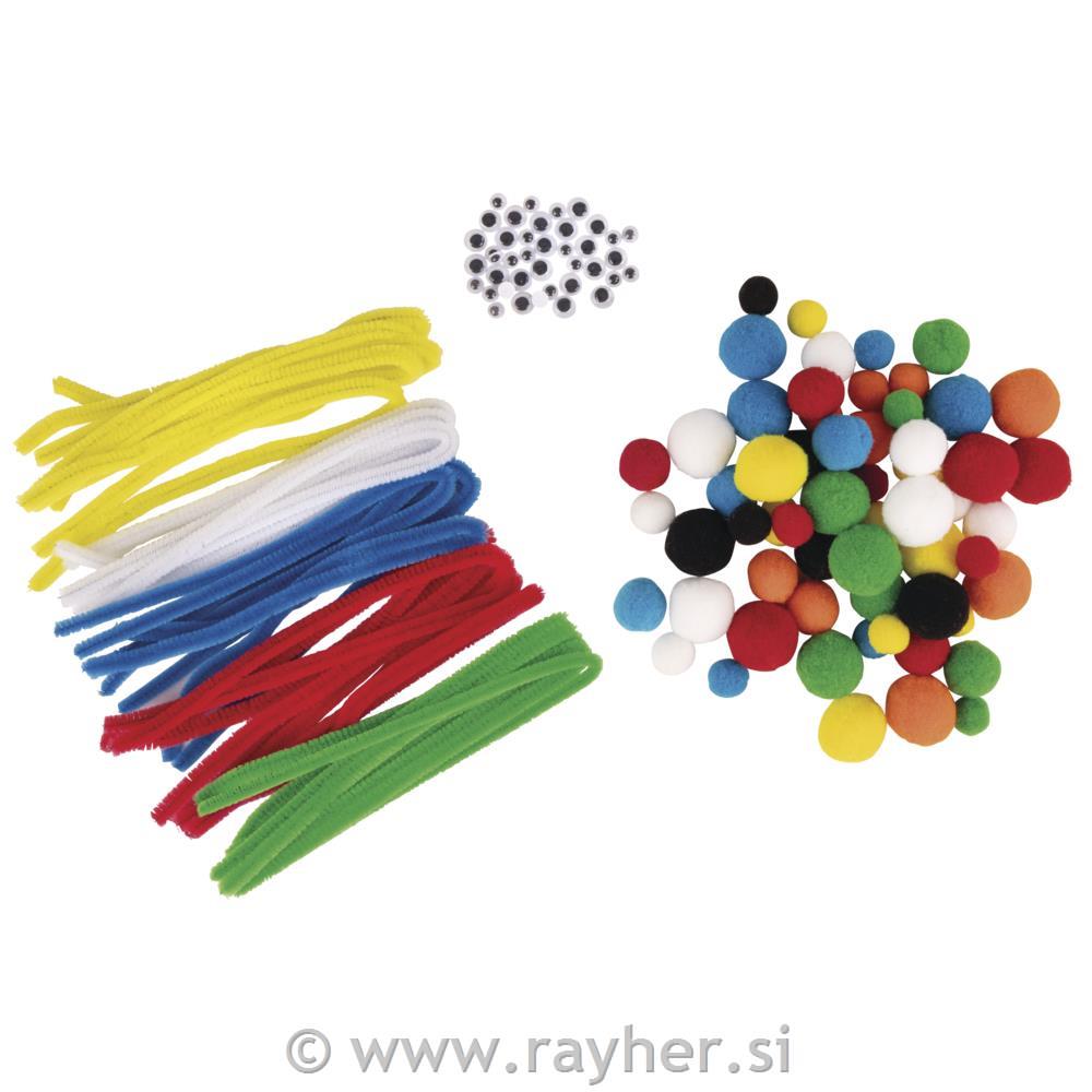 Ustvarjalni komplet s pisanimi kosmatimi žičkami, cofki in premikajočimi očmi.