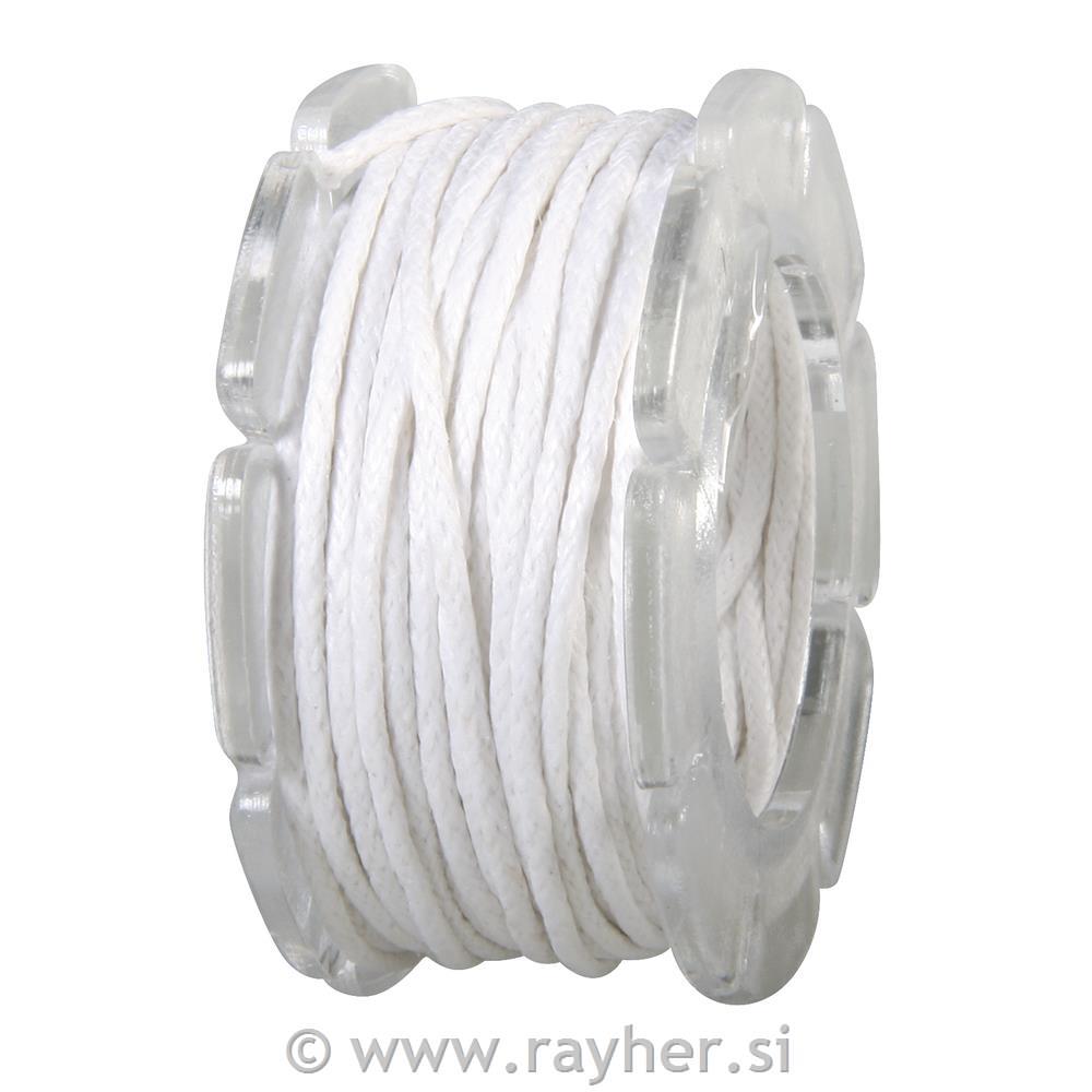 Bombažna vrvica, povoščena, bela, 1 mm o, 5 m