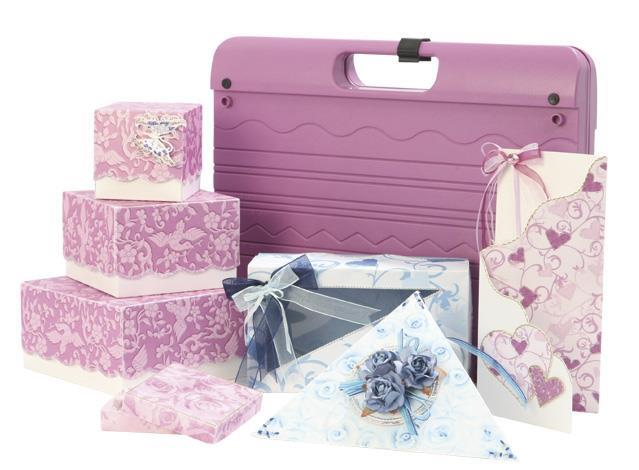 Vsestransko uporaben, prenosljiv, praktičen kovček, ki vam omogoča natančnost prepogibanja, merjenja, rezanja, odtiskovanja na papirju in kartonu ter oblikovanje škatel, vizitk, kuvert in še kaj drugega .... Vsak Ultimate Pro je opremljen s podrobnim vodnikom po korakih, ki vključuje vadnice o 10 funkcijah plošče z dodatnimi namigi in nasveti. Priložena je tudi vrsta pripomočkov za izdelavo: zatiči za izdelavo pentelj, 2 orodji za vtiskovanje z dvojnim koncem, ergonomsko oblikovano rezalno orodje z dvostransko izvlečnim varnostnim zapahom in tečajnim ravnilom. Vsi dodatki, ki jih potrebujete, so v vgrajenih predalih za shranjevanje v Ultimate Pro z oblikovanimi deli, ki držijo dodatke na mestu, ko je naprava zaprta. Ultimate Pro je lahek in kompakten.