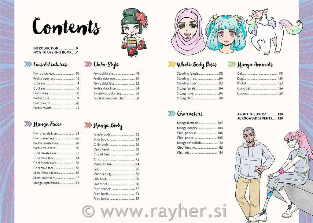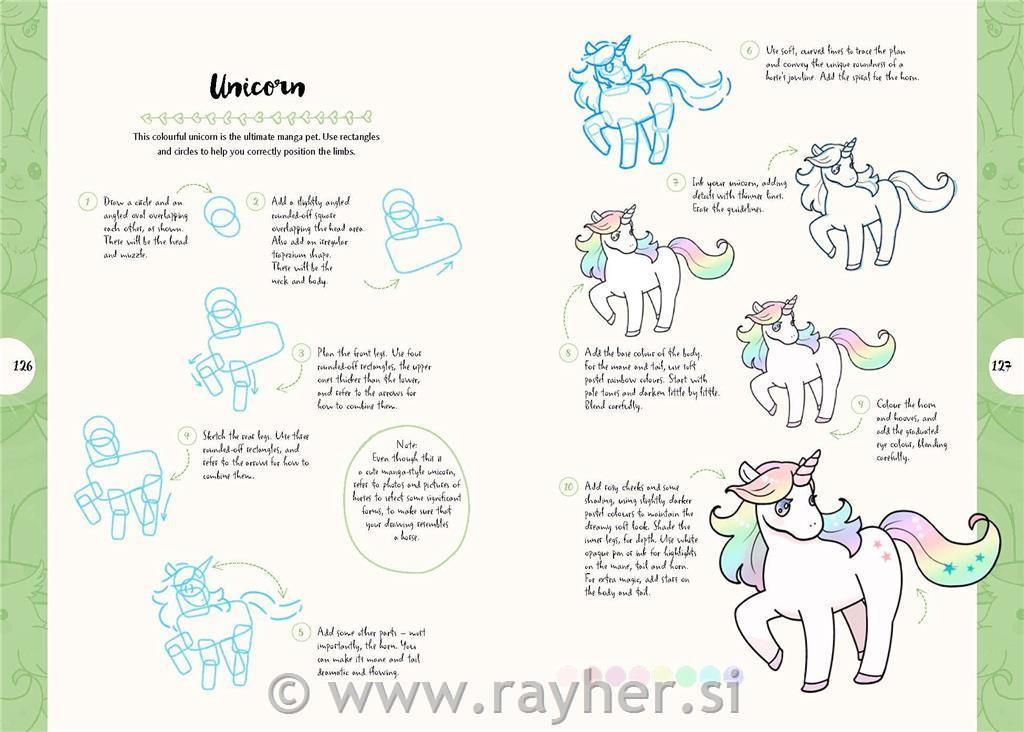 Po navodilih v notranjosti ustvarite več kot 30 različnih portretov, od prikupnih chibi ljudi do večbarvnega manga samoroga.