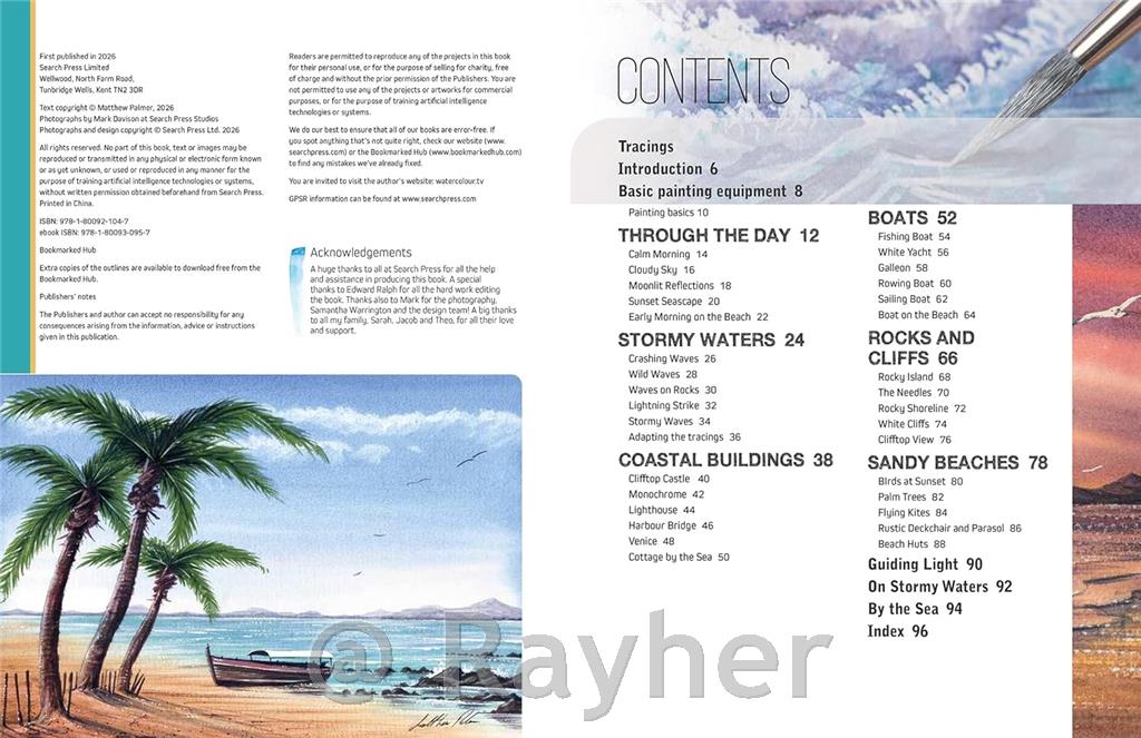 • At the end of the book discover 3 larger scale finished paintings that demonstrate how to integrate the techniques you’ve learned into vibrant and inspiring seascapes; these complete paintings also have an accompanying actual-size tracing.