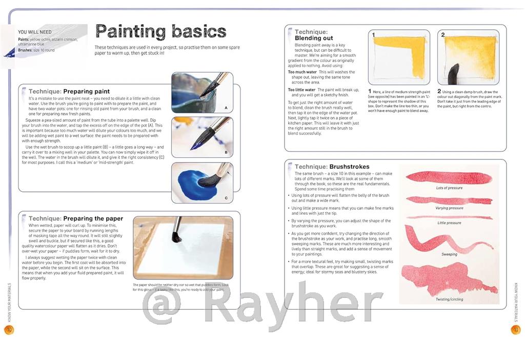 • Covers watercolour basics, building up from core watercolour techniques including preparing paper and paint and blending.