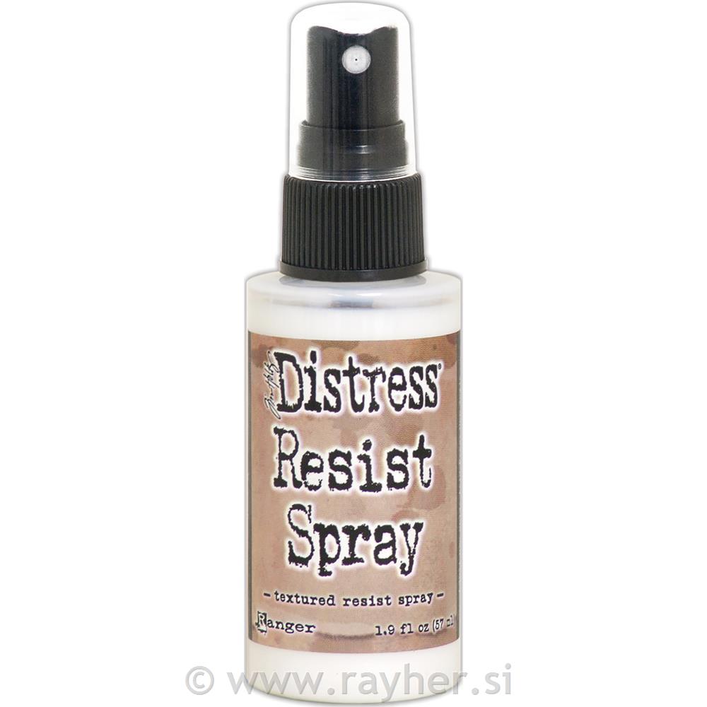 Tim Holtz Distress resist sprej je teksturiran sprej, ki se suši brezbarvno in je odporen na vodo. Sprej lahko za mixed media uporabite neposredno na površini za učinek brizganja ali prek šablone.