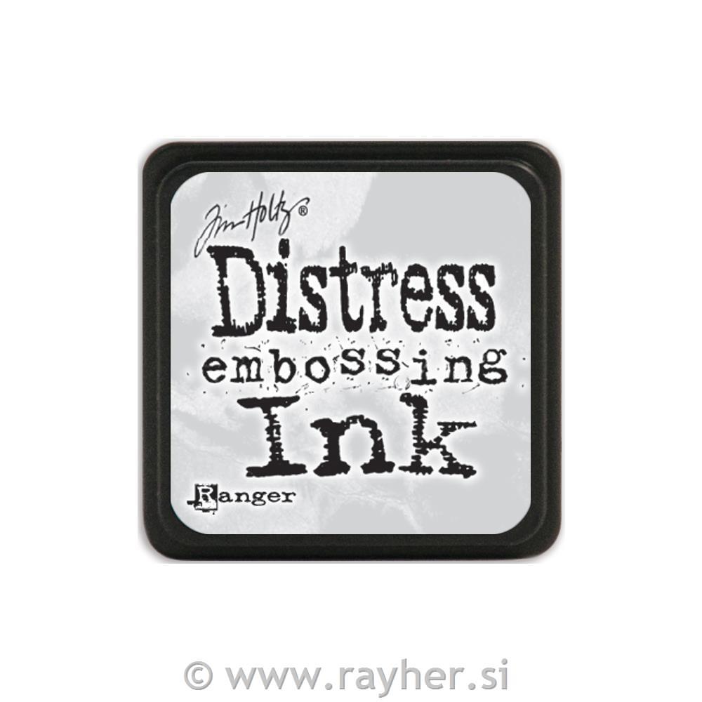Distress Clear Embossing balzinica je oblikovna tako, da daje ustvarjalki/ustvarjalcu optimalno zmogljivost pri vtiskovanju z embossing prahci. Posebej razvito reliefno črnilo omogoča idealno količino "sprostitve", da dobi vintage, obrabljen in prepereli videz.