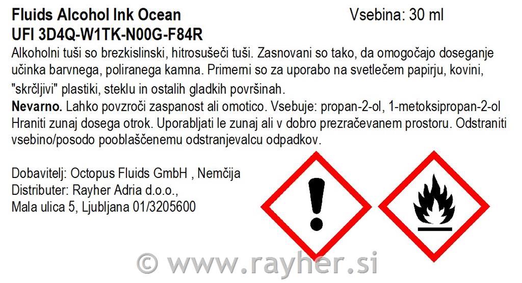 Hitrosušeč, visoko pigmentan tuš na alkoholni osnovi, ki ne vsebuje kislin. Pred uporabo dobro pretresite! Večina tušev je prosojnih, nekaj pa je prekrivnih. Na voljo so tudi kovinski toni barv. Z alkoholnimi tuši Octopus Fluids ustvarite čudovite barvne prehode, abstraktne učinke in vedno presenetljive oblike. Alkoholni tuši so po sušenju odporni na razmazovanje in so vodoodporni, vendar jih lahko kadar koli utekočinite ali odstranite s čistilom Octopus Fluids. Alkoholni tuši zaradi svojih sijočih, močnih barv in zelo uravnoteženega medbarvnega prelivanja ne dajejo vašim umetniškim delom le posebne izraznosti, temveč so popolna tudi pri enakomernem barvanju. Skupaj z raztopino za mešanje Octopus Fluid, ki je optimalno usklajena z alkoholnimi tuši Octopus Fluids, lahko dosežete dodatne barvne nianse in učinke.