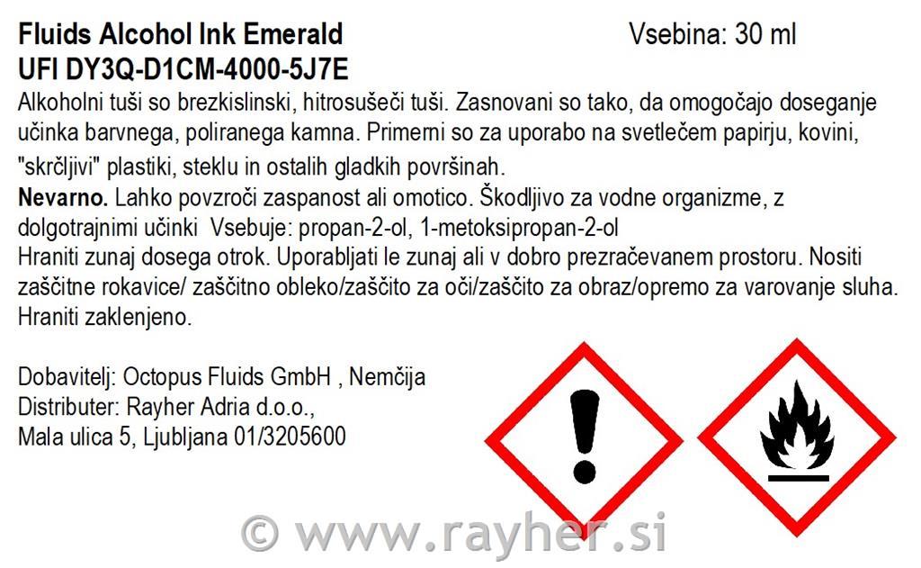 Alkoholni tuš Fluids 30 ml, emerald ,prosojen ton