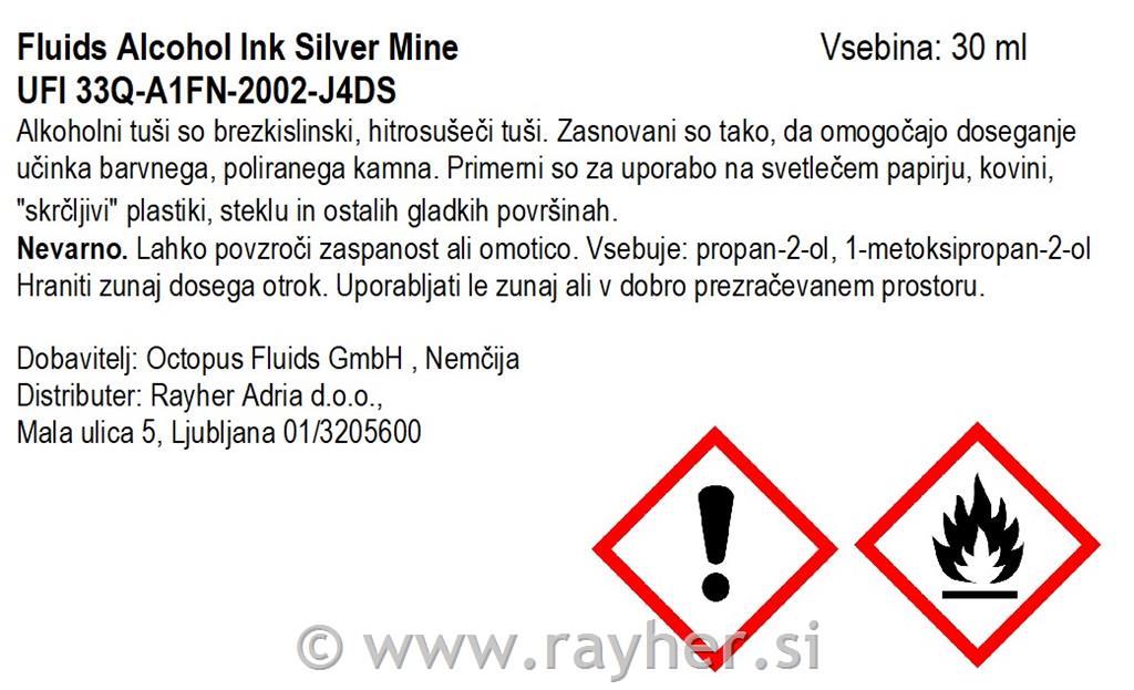 Alkoholni tuš Fluids 30 ml, silver mine ,kovinski ton