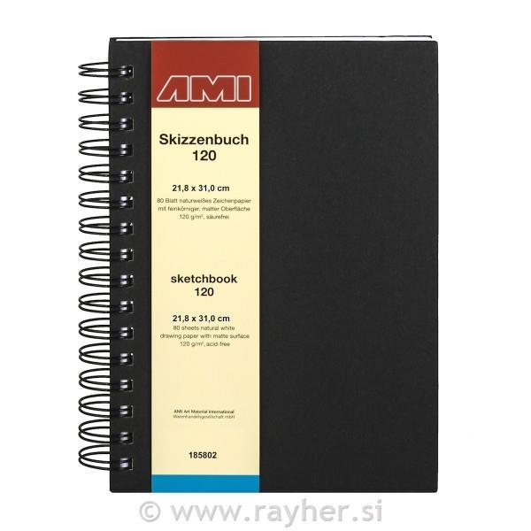 Skicirka spirala trde platnice Ami 21,8x31 cm, 120g, 80 list