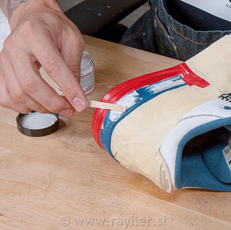 Z orodjem ali lopatico nanesite tanko plast Angelus Paintable Repair Filler v razpoko ali luknjo. Dobro ga pritisnite in zgladite.