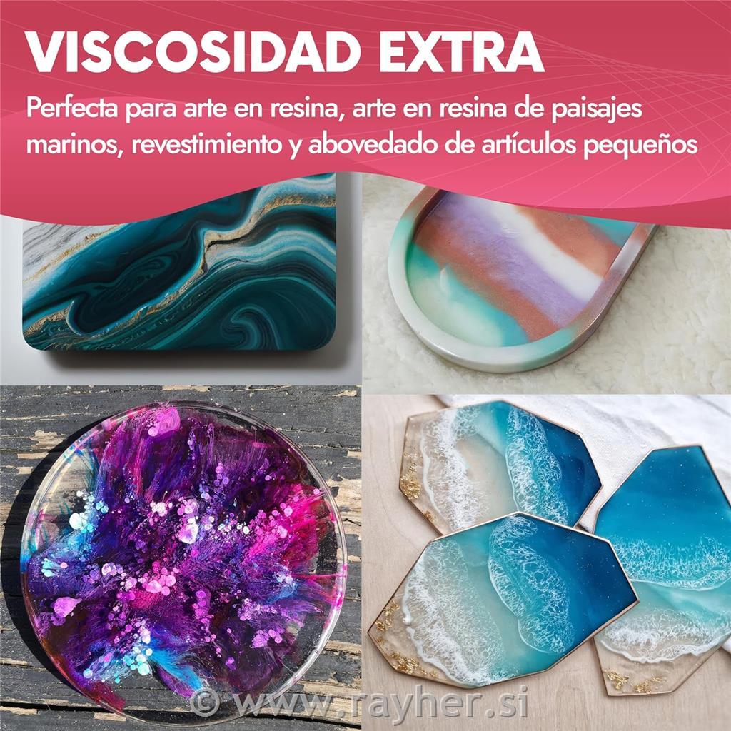 Odlično za izdelavo silikonskih kalupov, slik, tablic in ur s tehnikami iz smole, agata, svečnikov, podstavkov, pladnjev, skodelic, ogledal, mizarskih izdelkov in miz za projekte "naredi sam".