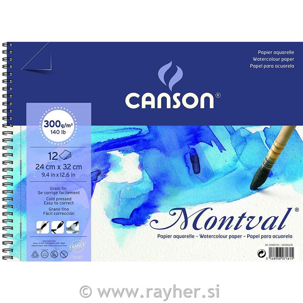 Bistvena lastnost akvarelnega papirja Canson Montval so preprosti popravki z enostavno potezo čopiča. Papir je oblikoval slavni slikar Gaspard Maillol v začetku 20. stoletja in izdelal na Foundrinier stroju. Osnovno je Canson Montval razvit za akvarel, vendar se lahko uporablja tudi z drugimi mokrimi tehnikami, kot sta gvaš ali akril. Na voljo je v različnih strukturah papirja.