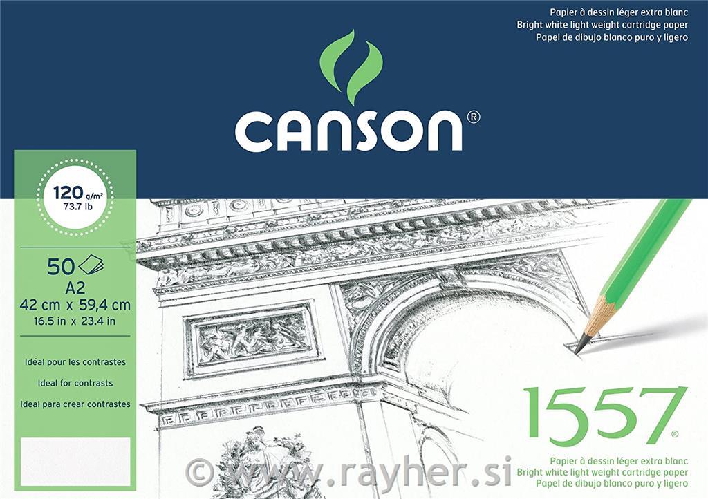 Ta svetlo bel papir je bil zasnovan za poudarjanje kontrasta in omogoča posebno živost barv. Ime 1557 se poklanja letu, ko je družina Montgolfier ustanovila Canson. Ta odlična klasika je priljubljena tako med profesionalnimi kot ljubiteljskimi umetniki, ki cenijo njeno nežno zrnato strukturo. Struktura papirja ni niti preveč gladko niti preveč izstopajoče, kar daje nevtralno in subtilno površino, ki je idealna za skiciranje in risanje s suhimi mediji. Papir Canson 1557 je idealen za uporabo z vsemi vrstami grafita, saj dobro zadržuje pigmente in omogoča neomejeno senčenje in gradacijo. Površina papirja Canson 1557 je izjemno odporna na večkratno brisanje.
