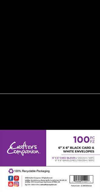 V paketu Crafter's Companion 15x15cm so črne osnove za voščilnice in bele kuverte - 100 kosov