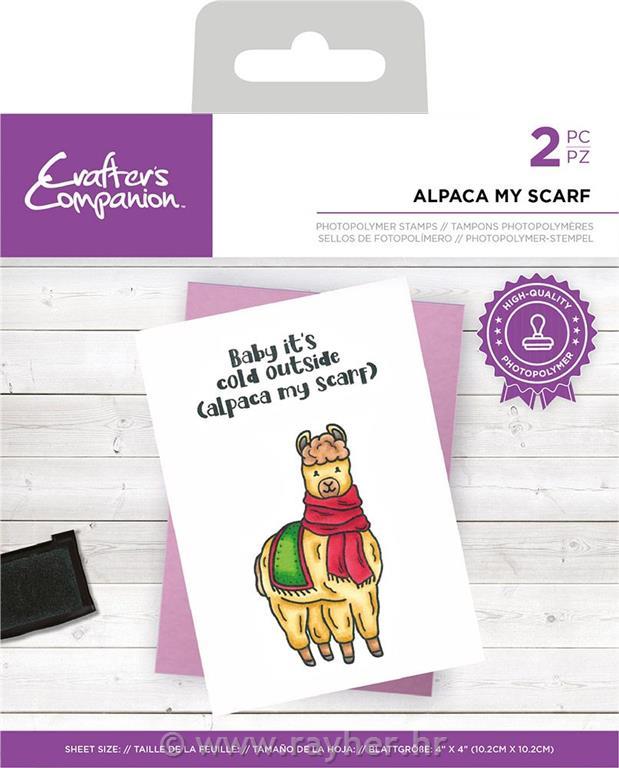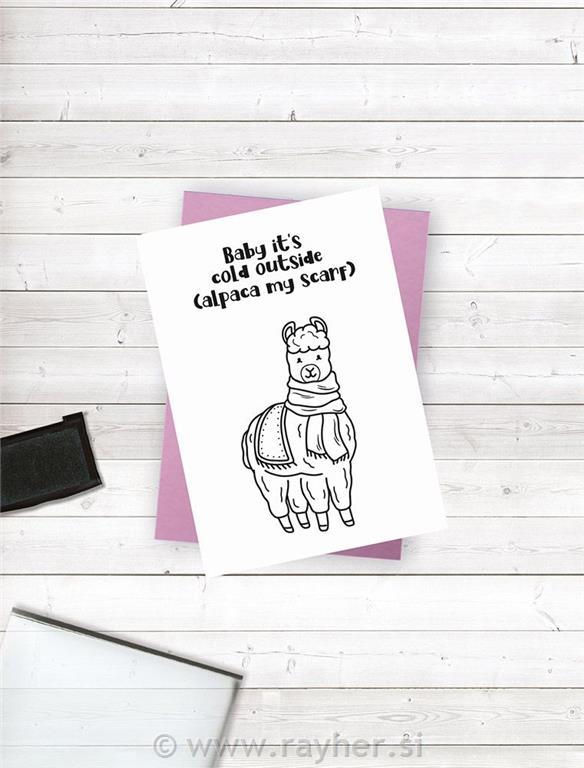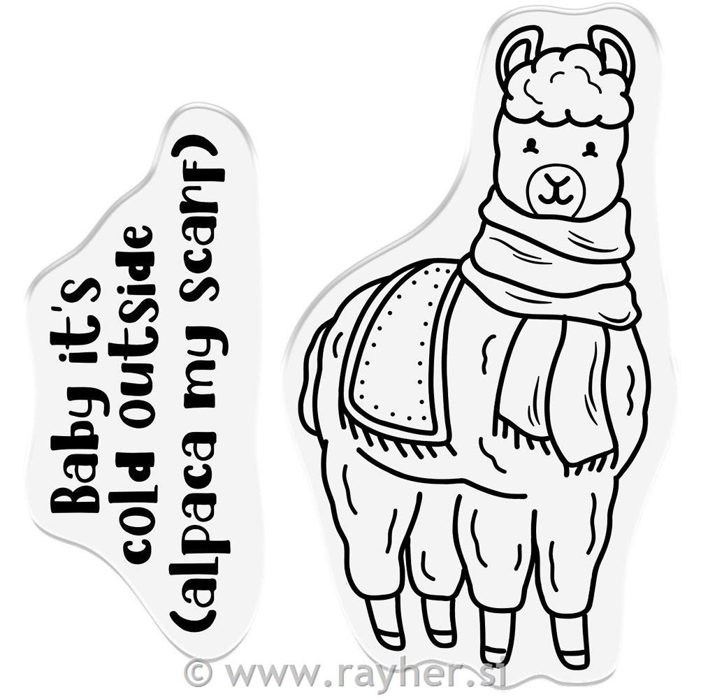 Štampiljka "Alpakal" vsebuje sporočilo "Baby it's cold outside (alpaca my scarf)" in alpako s prikupnim šalom in ljubkim nasmehom!