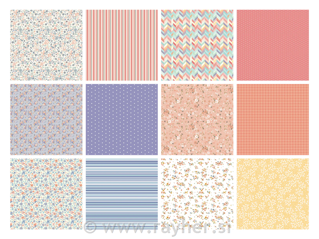 12 designs, three sheets of each paper.