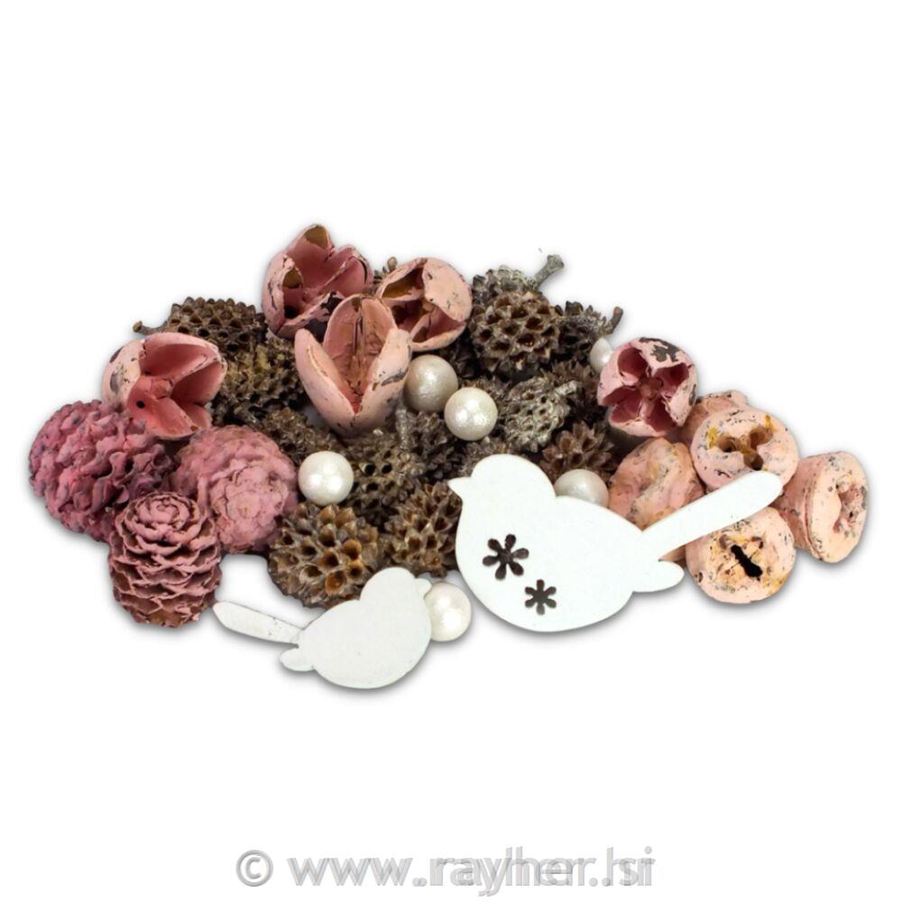 Dekoracija natur, roza s ptičkom