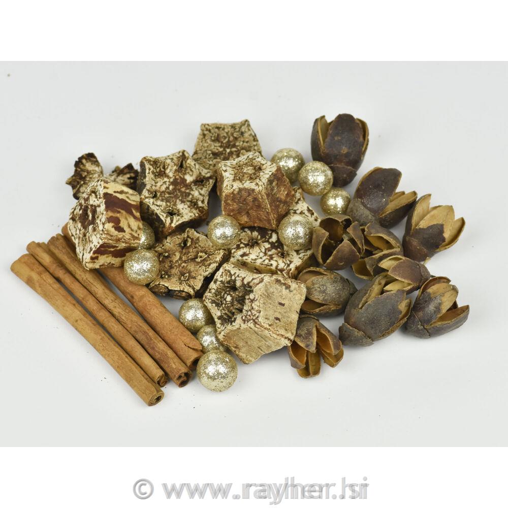 Paket za dekoracijo vsebuje različne naravne plodove in dodatne dekorativne izdelke, ki bodo popestrile vsak vaš aranžma.