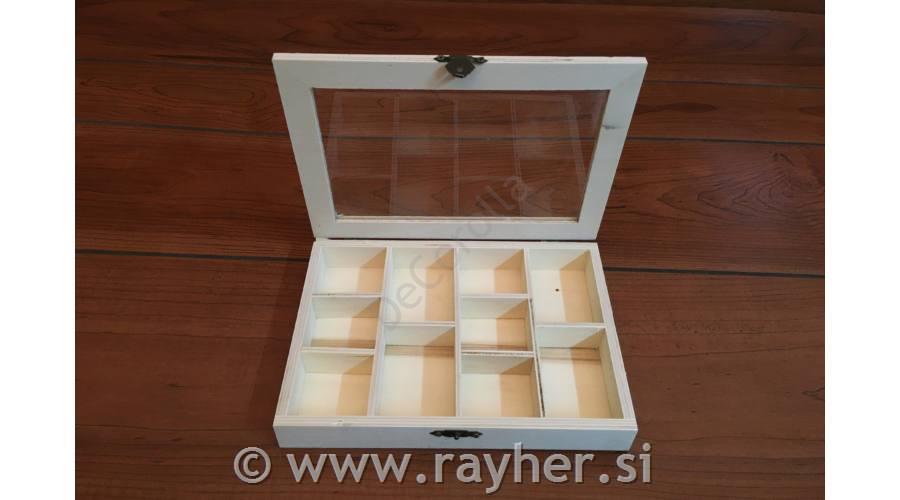 Lesena škatla za čaj, dimenzije 20,5x15x3cm
