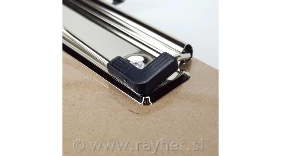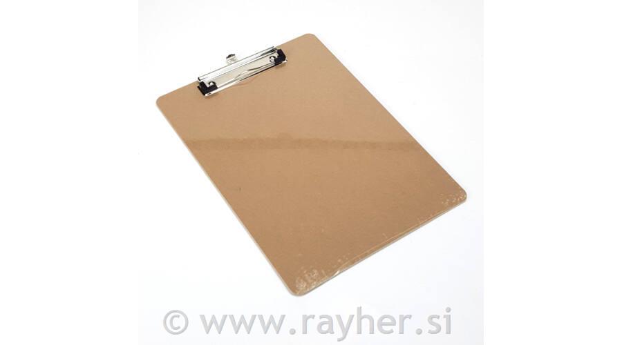 Podlaga za risanje A4 s sponko MDF ( les). Prevlečena s plastiko s kovinsko sponko na vrhu, ki ščiti papir pred poškodbami.