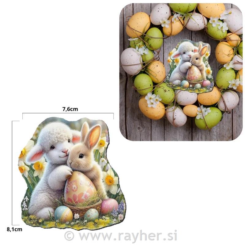 Ljubek lesen okrasek z motivom zajčka s klobukom je popoln dodatek za pomladno in velikonočno dekoracijo. Idealen za venčke, aranžmaje ali samostojno okrasitev.