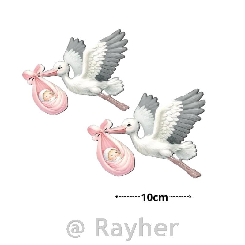 Leseni okras, štorklja z dojenčkom, roza, set 2