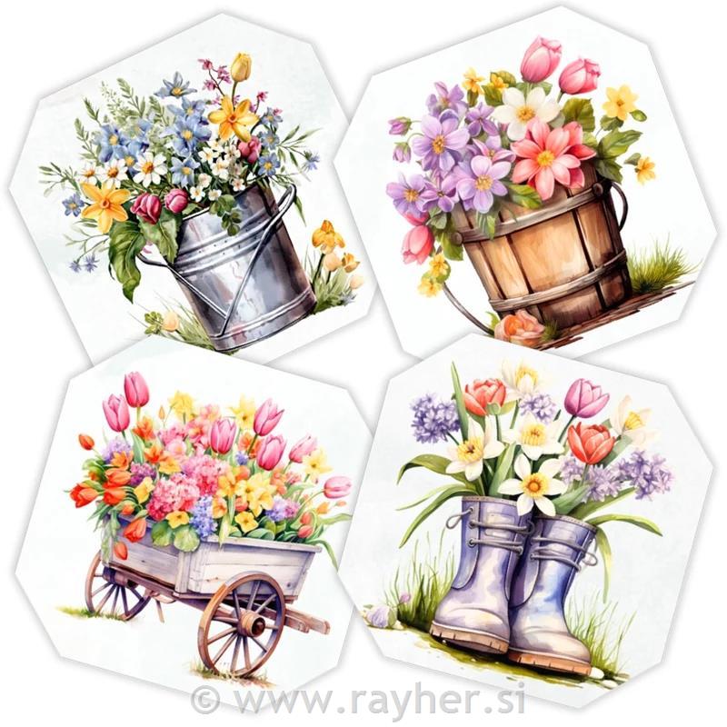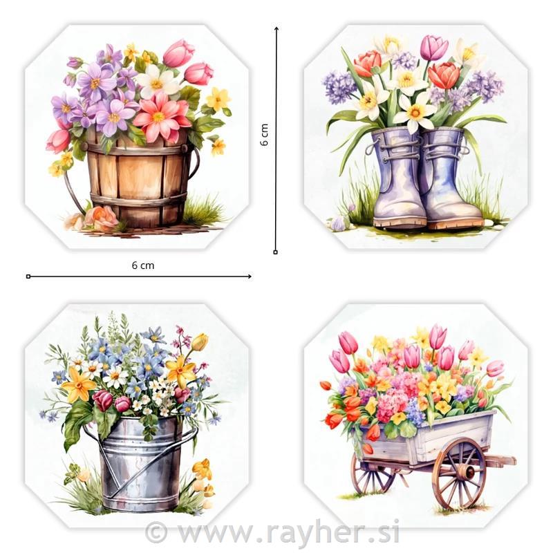 Prikupen lesen okrasek z barvitim motivom cvetja v dekorativni posodi je čudovit dodatek za pomladno dekoracijo. Nežen ilustrativen dizajn vnese svežino in toplino v vsak prostor. Primeren je za okrasitev polic, miz, aranžmajev ali darilnih paketov.