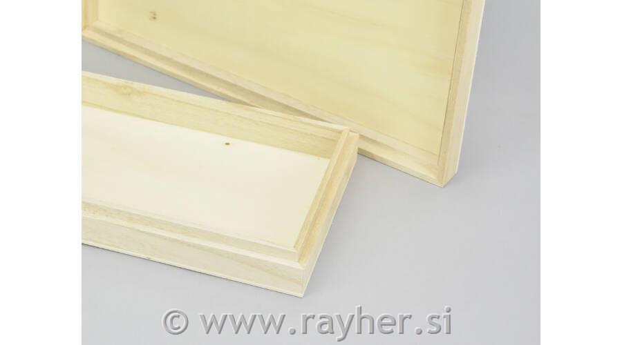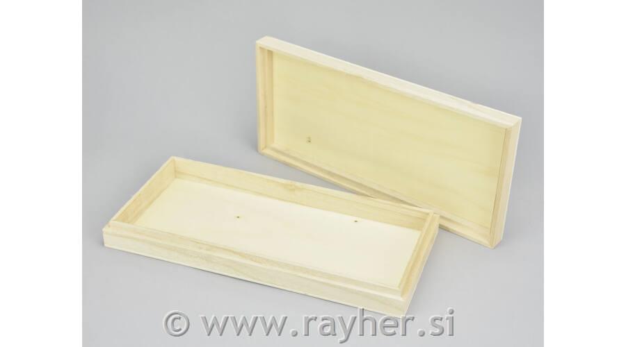Notranje mere lesene škatle so 27x11x2.3 cm.