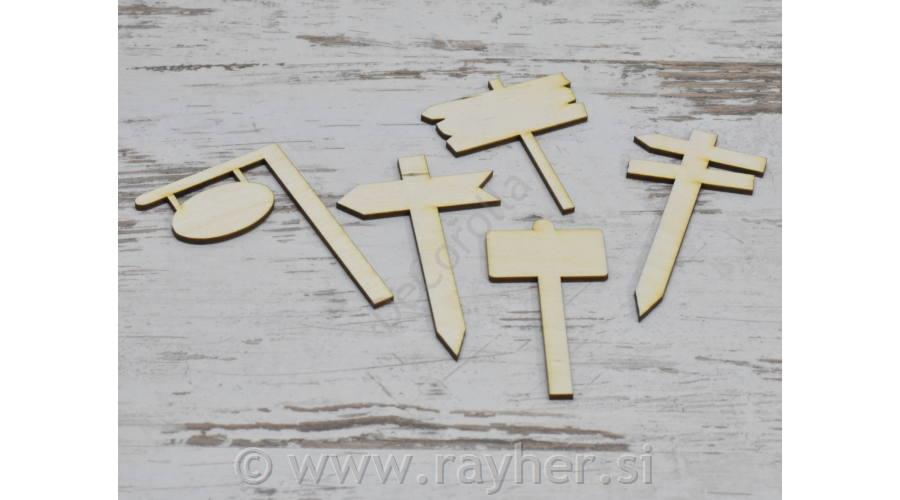 Leseni okraski, smerokazi, table, set 5