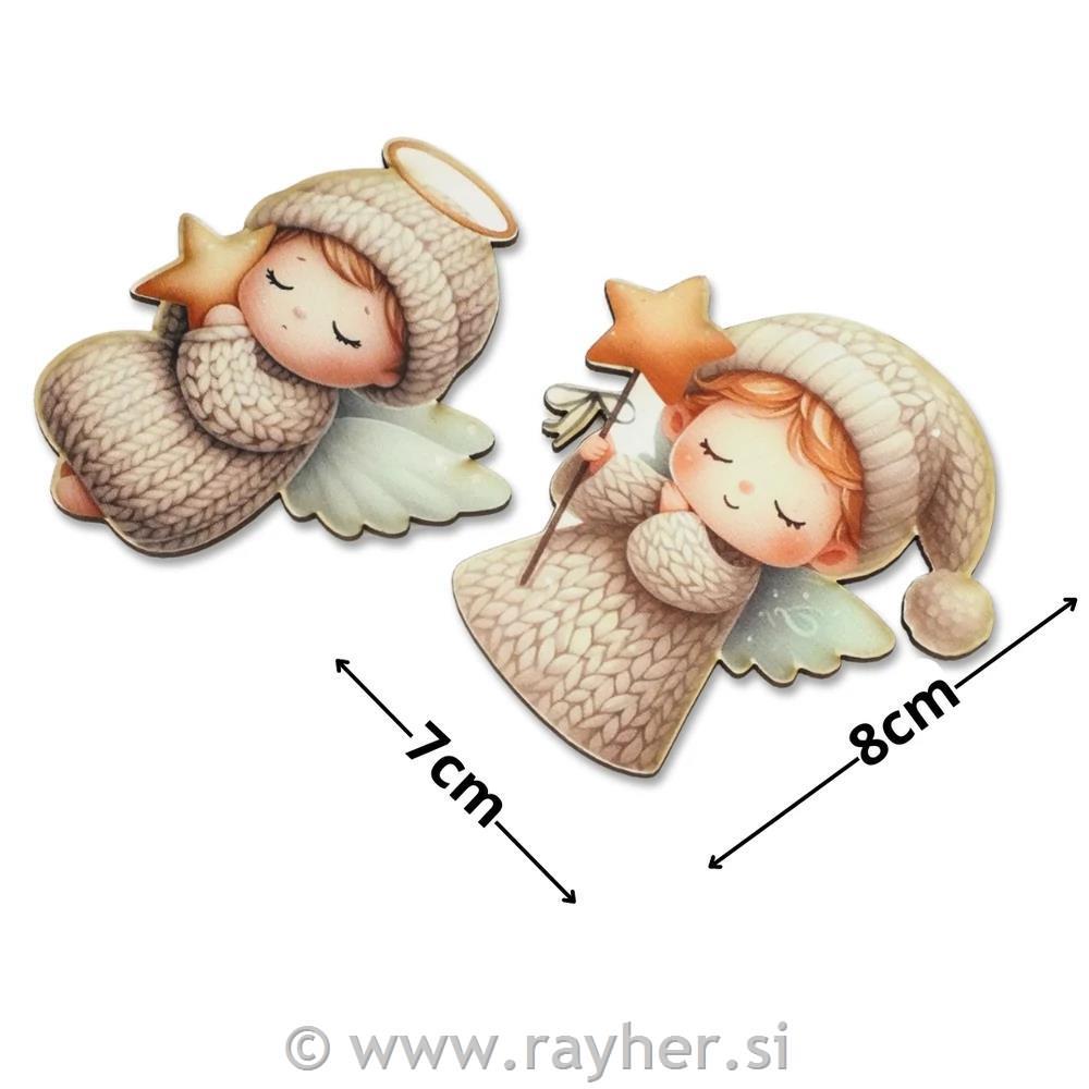 Čudovita lesena angelčka bosta v vaš dom prinesla mir, toplino in praznično vzdušje. Ta set vsebuje 2 skrbno izdelana okraska v obliki angela, popolna za božično drevo, dekoracijo doma, voščila ali kot simbolično darilce.