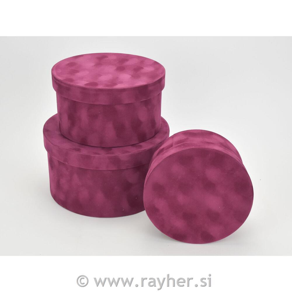 Škatla okrogla, žametna ,bord.rdeča, M , 18cm, 1 kos