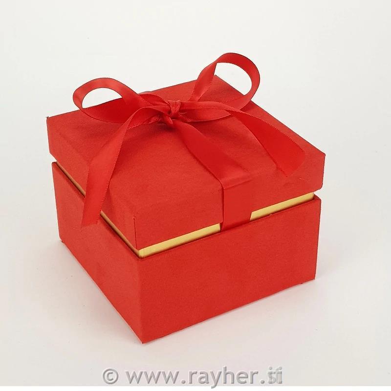 Darilna škatla Premium, žametna, rdeča, 12x12x9cm, 1 kos