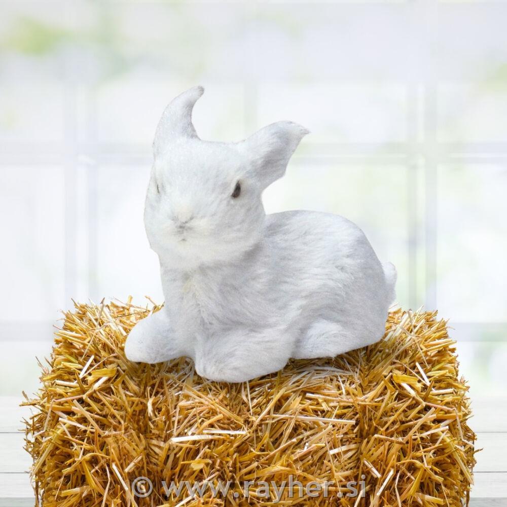 Zajček figura iz odličnega umetnega krzna, premium kvaliteta. Figura je samostoječa in primerna za različne dekoracije, aranžmaje, venčke, dodatke,…