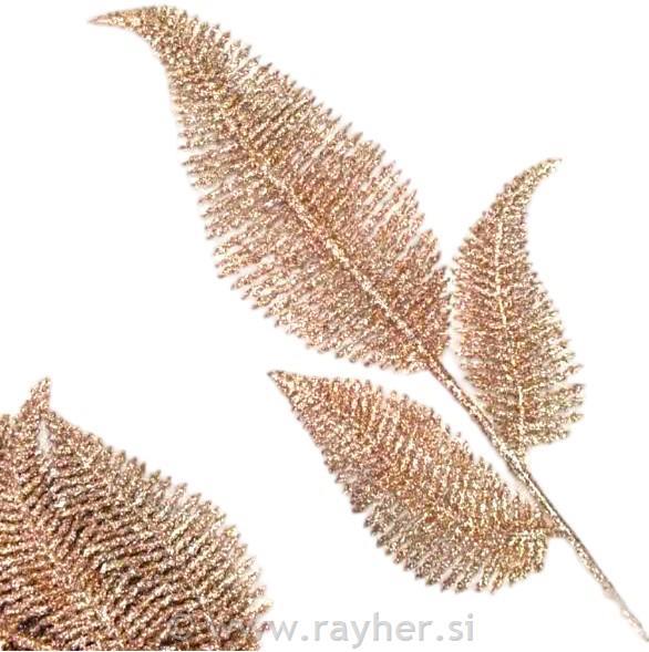 Vejica z listi, z bleščicami, bakrena, 1 kom
