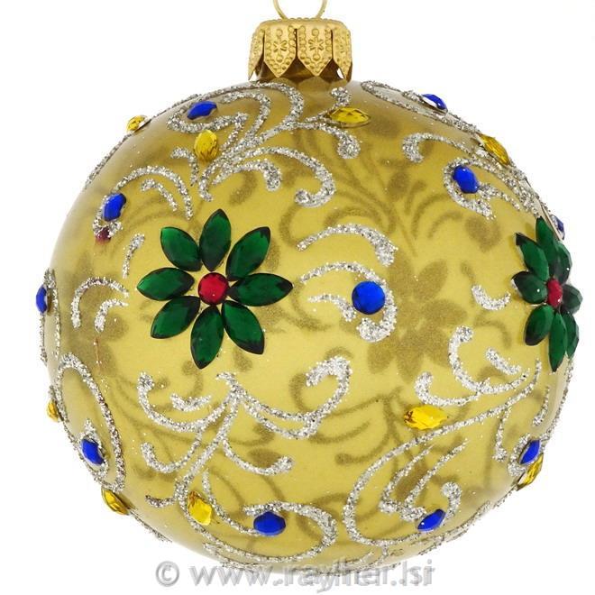 DAGMARA steklena krogla za božično drevo, zlata, cvetilni vzorec, 8cm