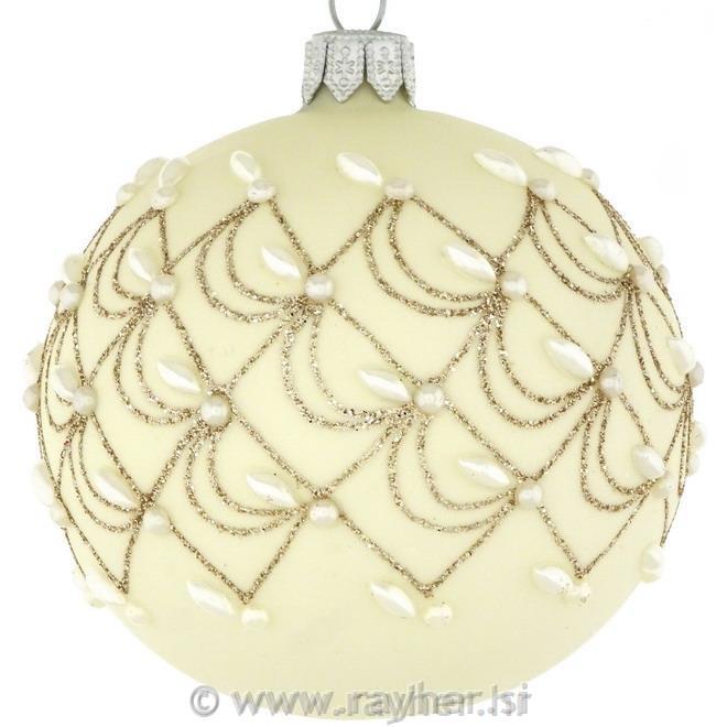 DAGMARA steklena krogla za božično drevo, vanilija, ornament s perlami, 8cm