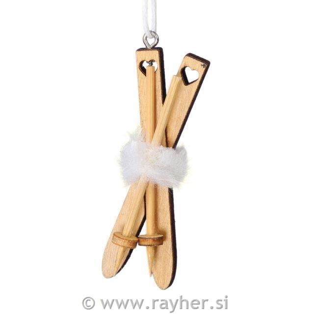 V paketu so štirje pari lesenih okraskov, smuči in palice, z zanko za obešanje in vrvico. Dolžina 7cm