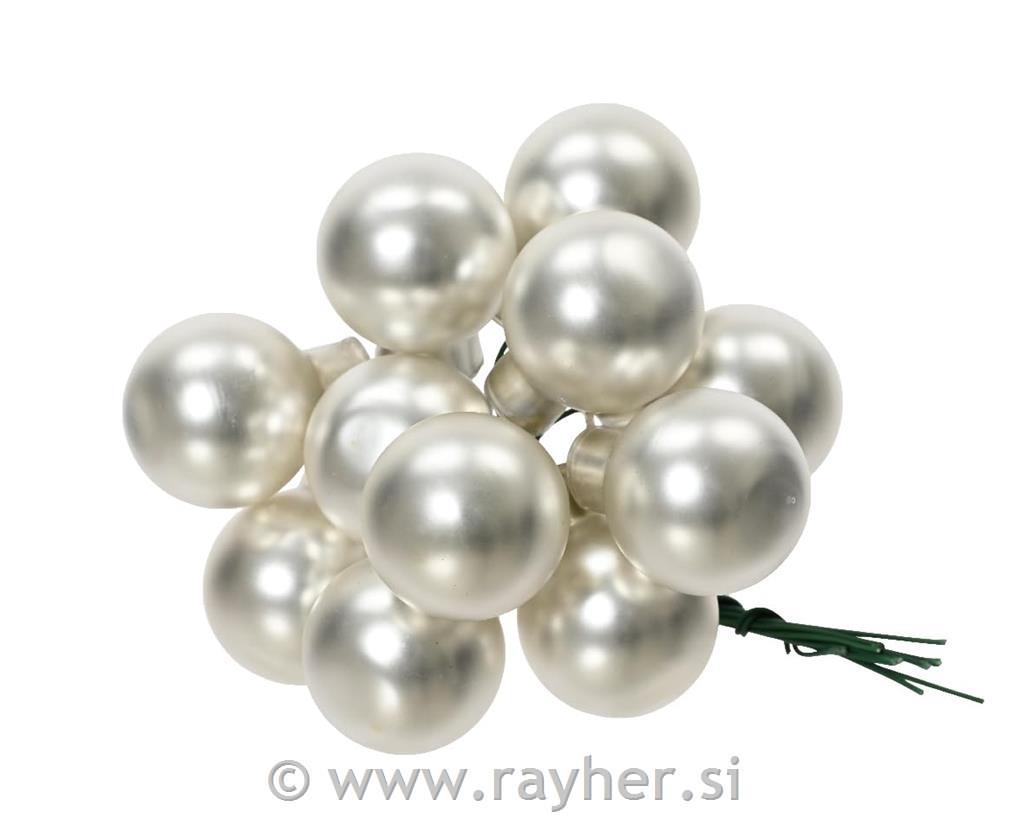 Božični balončki stekleni, 2cm, srebrni mat, set 12