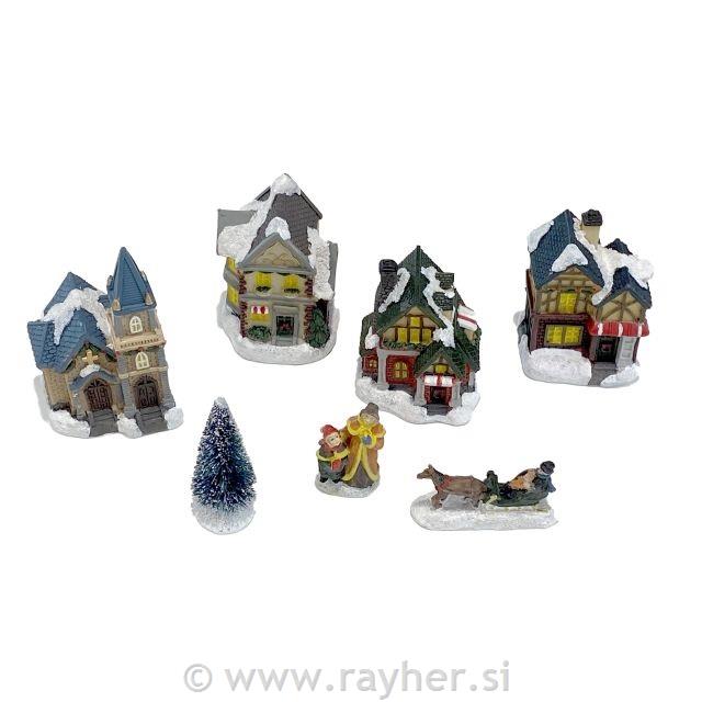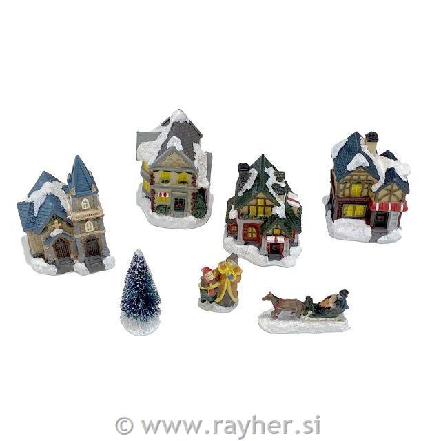 Čudovit set zimske vasi z LED osvetlitvijo vključuje 7hišk in stavb, ki tvorijo idilično zimsko vasico. Vsaka hiška ima lastno edinstveno zasnovo, ki pričara občutek topline in prazničnega vzdušja. Zarad LED osvetlitve set postane še bolj čaroben, ko se prižgejo luči in osvetlijo celotno vasico. To ustvari pridih čarobnosti in ustvari edinstveno praznično vzdušje. Hiške so podrobno izdelane kar pripomore k realističnemu videzu.