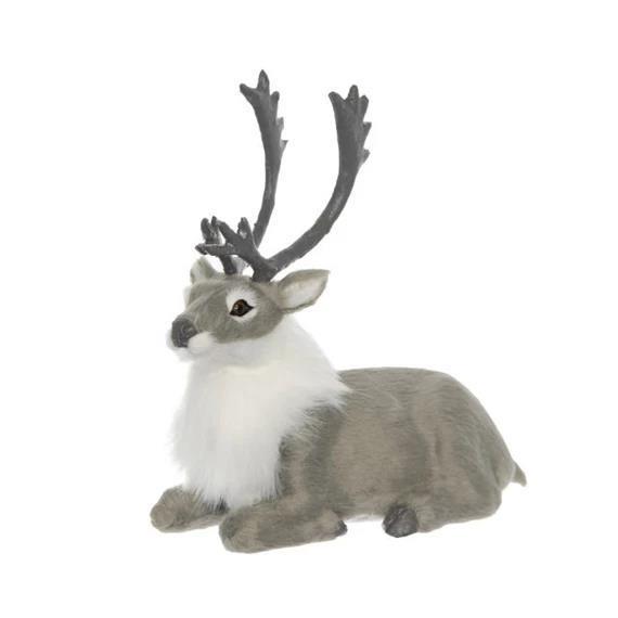 Ležeči jelen, 16 cm, siv, bel